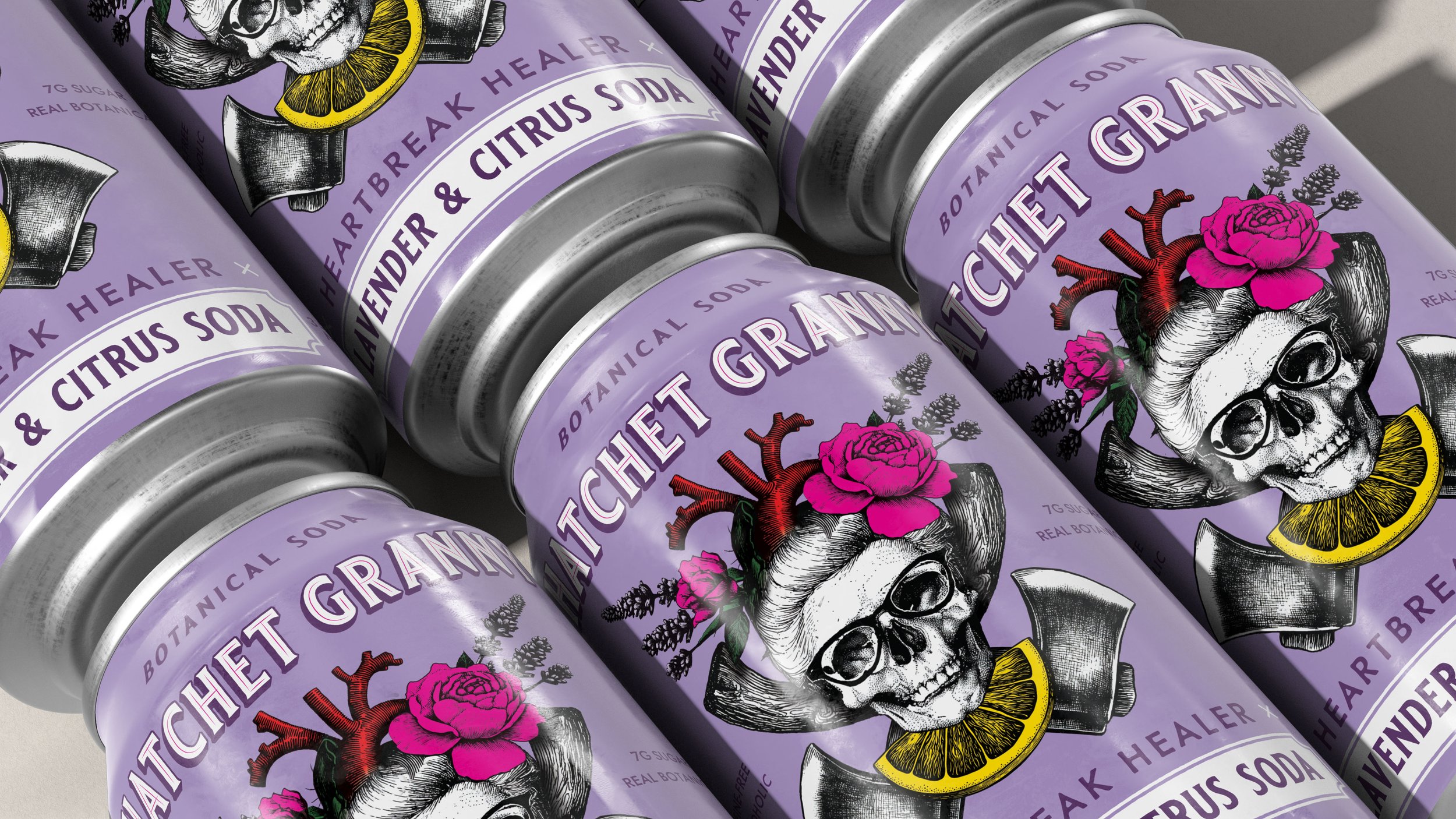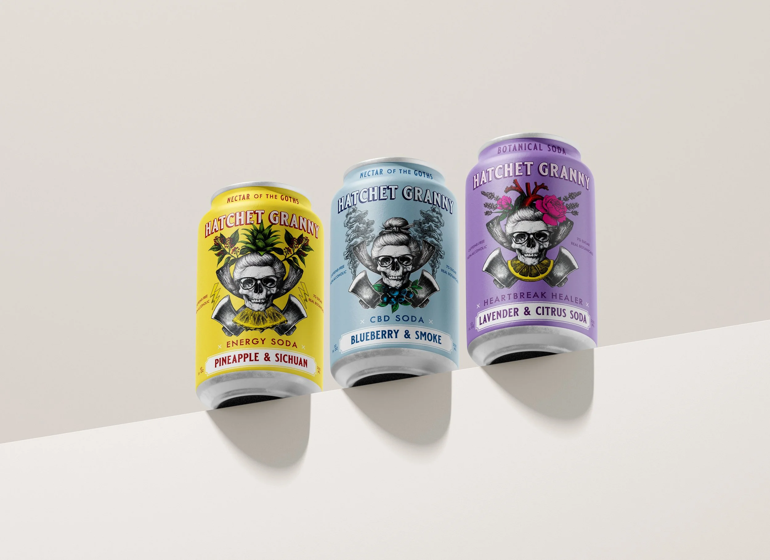 Hatchet Granny now owns a distinctive position in the non-alcoholic beverage market—immediately recognizable, emotionally resonant, and commercially viable. The brand successfully bridges alternative culture and mainstream appeal, creating a visual identity that invites curiosity rather than intimidation. The packaging works equally well in gothic specialty shops and mainstream retailers, with pop-up activations across Los Angeles, Chicago, Savannah, Portland, and Atlanta.